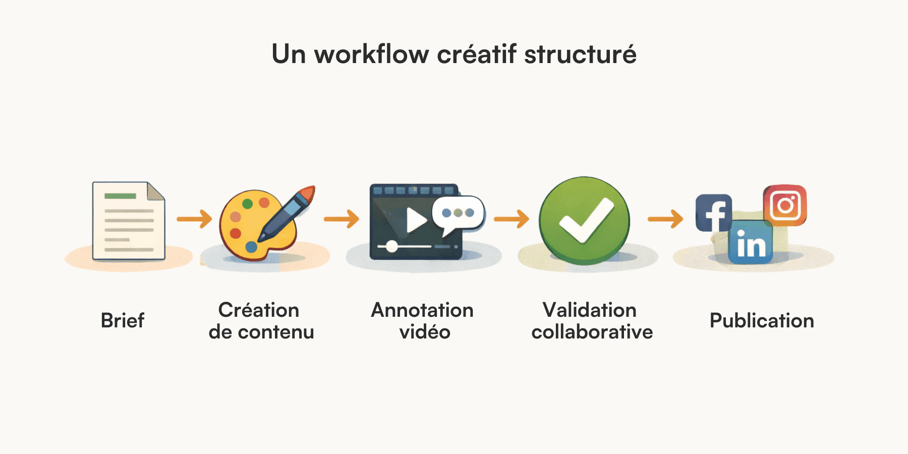 La plateforme organise l’ensemble du processus créatif, du brief jusqu’à la validation finale.